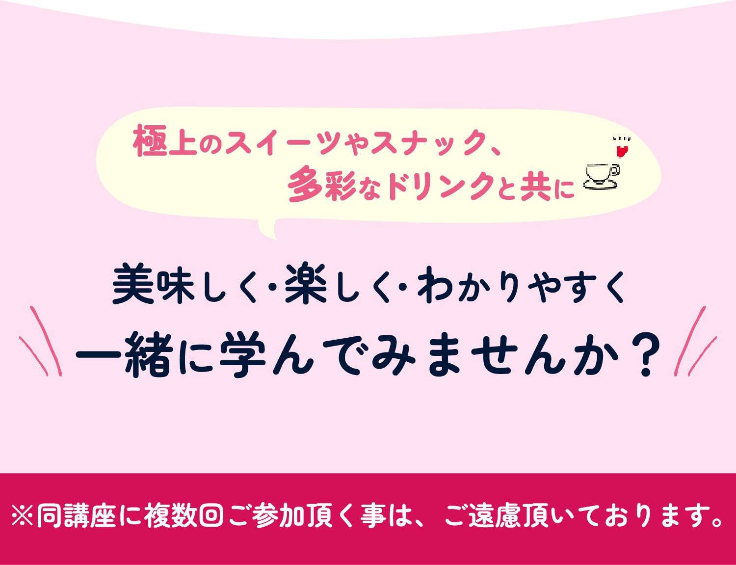 誰でも始められるやさしい【新NISA】や【iDeCo】をわかりやすく解説いたします。「お金って難しそう…」「貯めたいけど何から始めたらいいの?」そんなモヤモヤを、甘いスイーツやスナック&フリードリンクとともに美味しく解消しちゃいましょう!